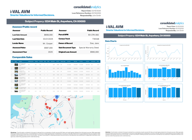 iVAL AVM by Consolidated Analytics delivers data-driven property insights that help mortgage professionals move faster, reduce risk, and make more informed lending decisions.
